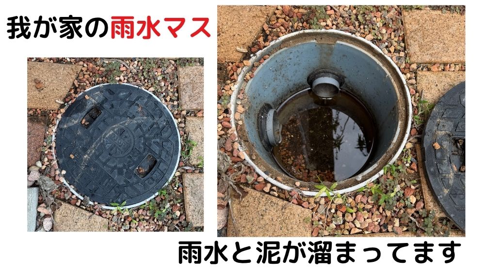 - 雨水マス:屋根や庭、駐車場などに降った雨水を流すためのマス。落ち葉や泥が詰まることがあります。