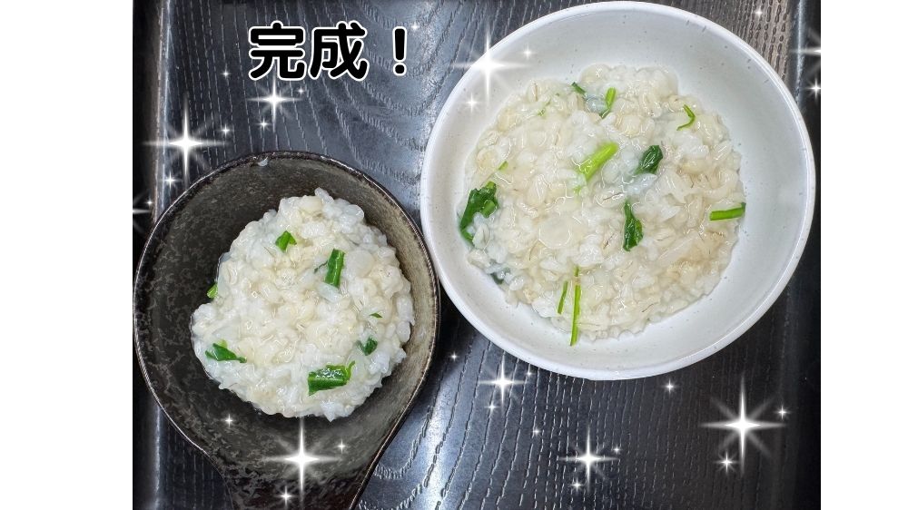 白米だけのおかゆより 少量でもお腹にたまりやすく