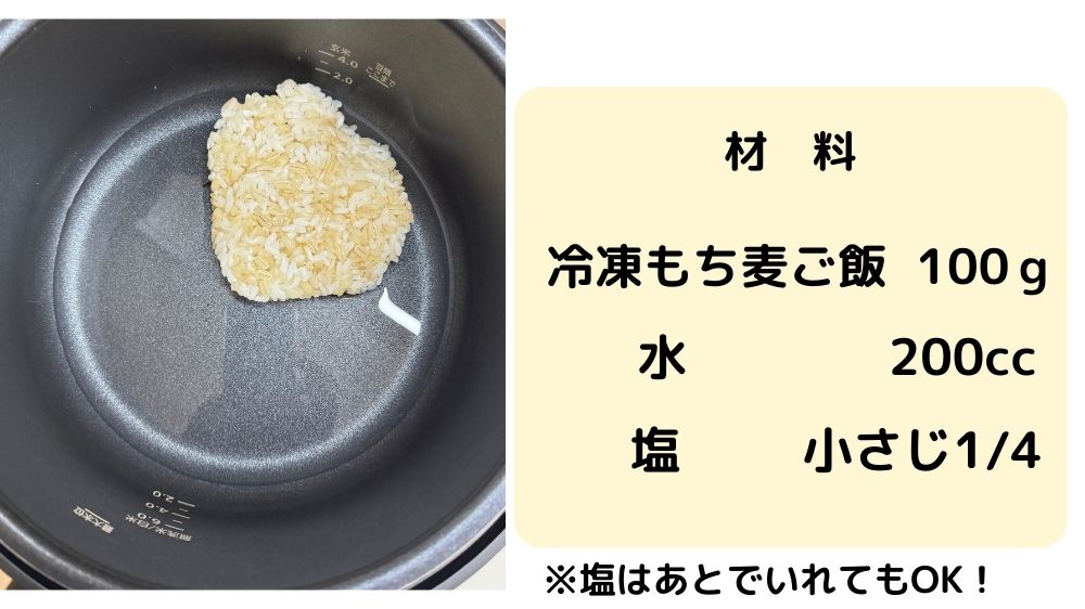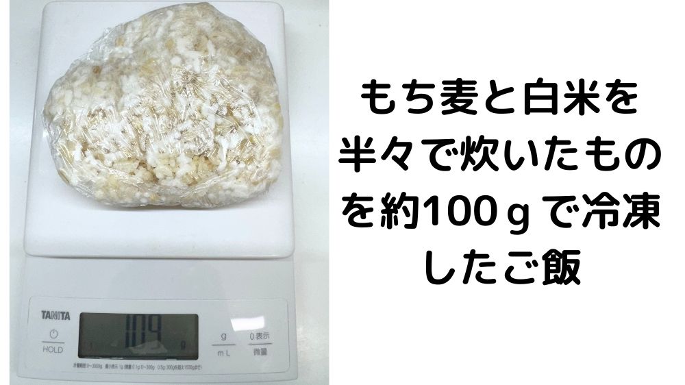 白米ともち麦を半々で炊いたもち麦ごはん約100g(冷凍)