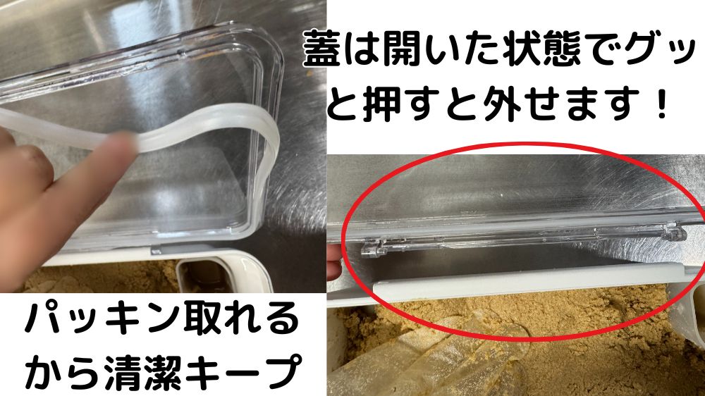 ⑧フタとパッキンが外せて清潔に保てる