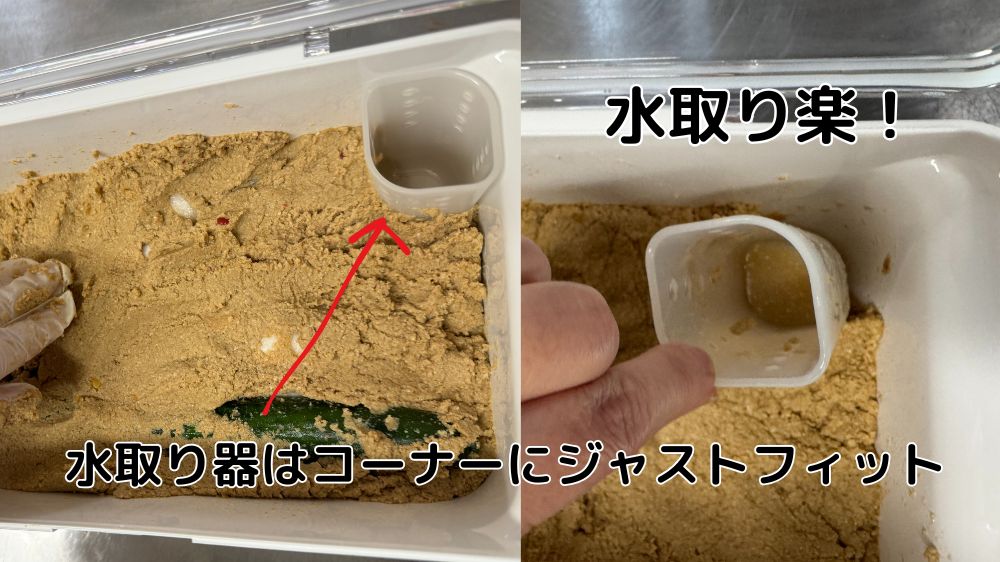 容器の角に水が自然に集まる構造。