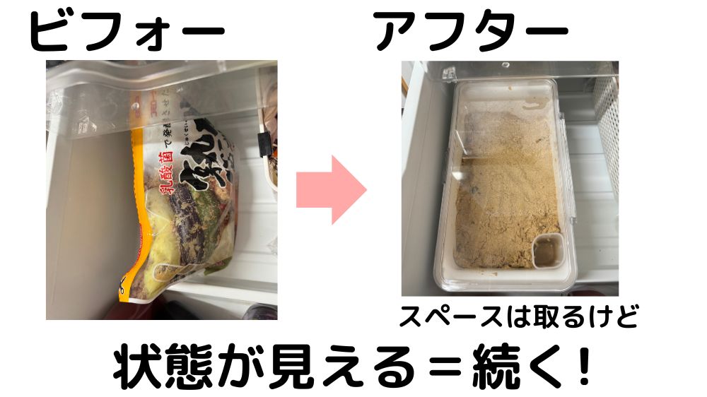 ぬか漬け専用の容器に変えたことで