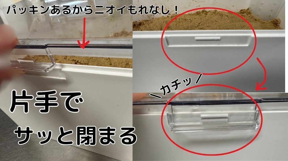 ②カチッとロックで匂い・漏れを防げる