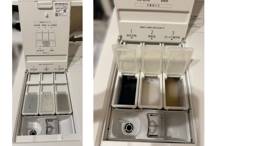 液体洗剤・柔軟剤・おしゃれ着洗剤の3種類を、タンクにまとめてセットしておけば毎回自動で適量を投入してくれます。