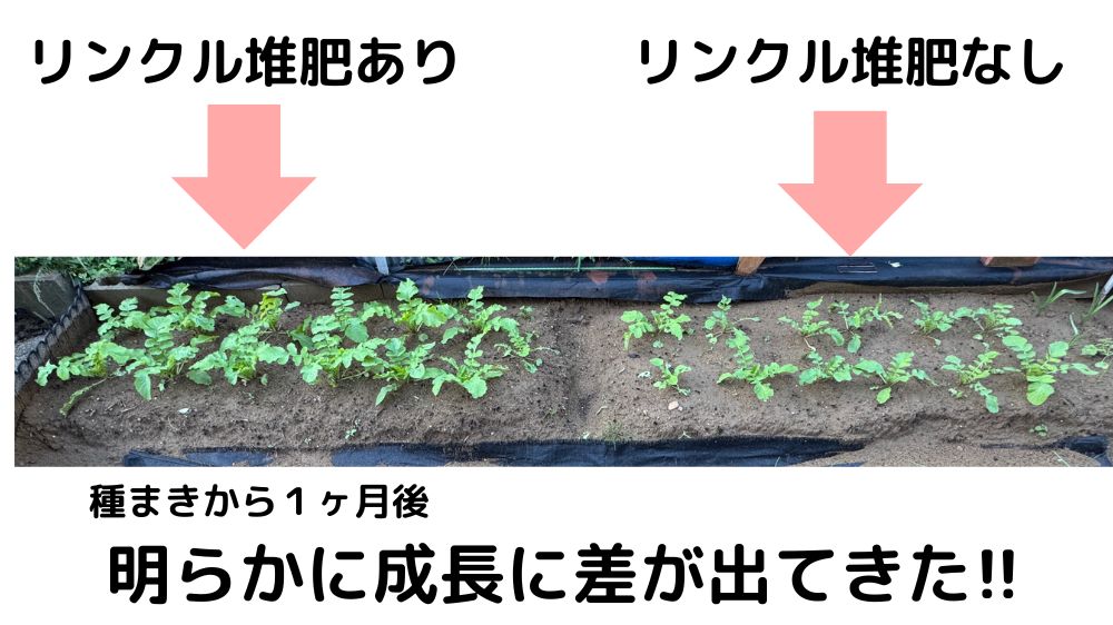 リンクル堆肥を混ぜた土と、混ぜていない土――果たしてどんな差が出たのでしょうか?