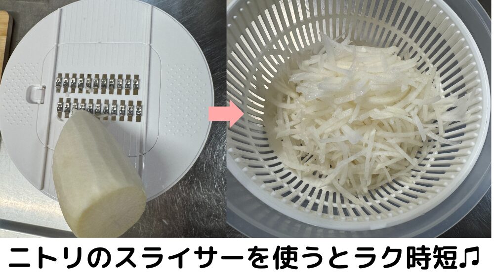 ただの大根千切りだけど、お好きなドレッシングをかけて一品完成!