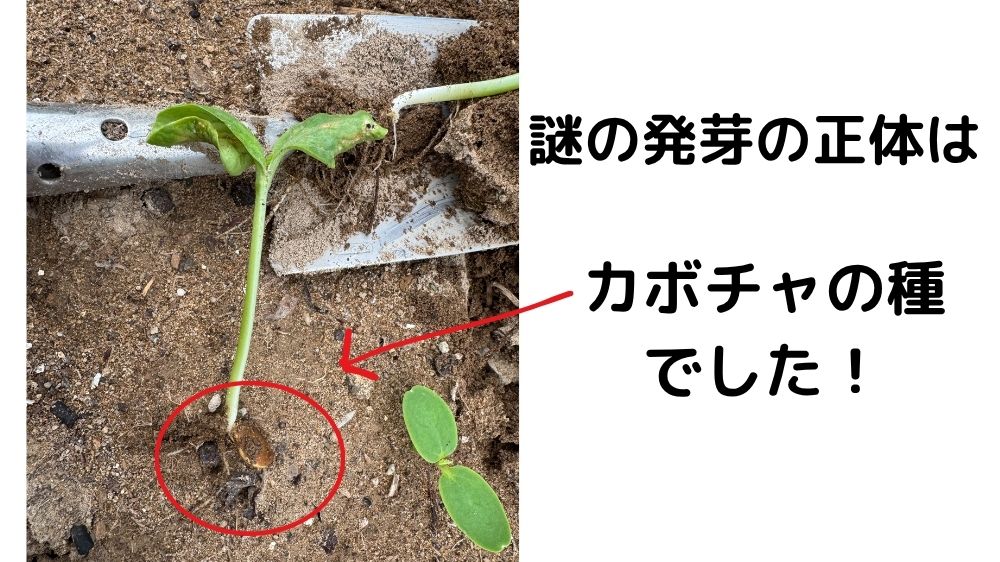 「まさか雑草?」と思って掘り返してみたところ、出てきたのは見覚えのあるカボチャの種!